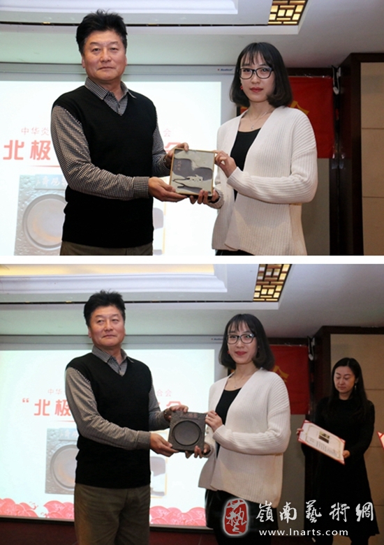 中华砚文化博物馆馆长于忠文、联合会办公室主任李杰展示北极砚