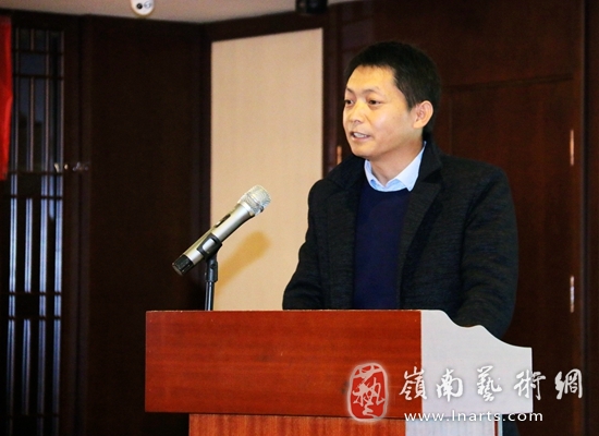 中国工艺美术大师曹加勇在交接仪式上介绍北极砚创作理念