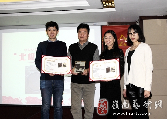 联合会办公室主任李杰、外联部长阴巍、办公室秘书李延东向中华砚文化博物馆馆长于忠文交接北极砚
