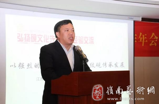 为弘扬先进,宣传和发挥先进典型模范作用,12月28日上午,中华炎黄文化研究会砚文化联合会在北京立根酒店召开“弘扬中华砚文化先进典型经验交流会”。中华炎黄文化研究会常务副会长任大援、张补旺,中国工艺美术协会会长周郑生、中国收藏家协会会长罗伯健等应邀出席。中华炎黄文化研究会砚文化联合会领导,砚界专家、雕刻家、制砚厂家代表、中华炎黄文化研究会砚文化联合会各部门、会员代表、志愿者,企业家等社会各界及新闻媒体180余人出席。中华炎黄文化研究会砚文化联合会执行会长唐本高主持了会议。