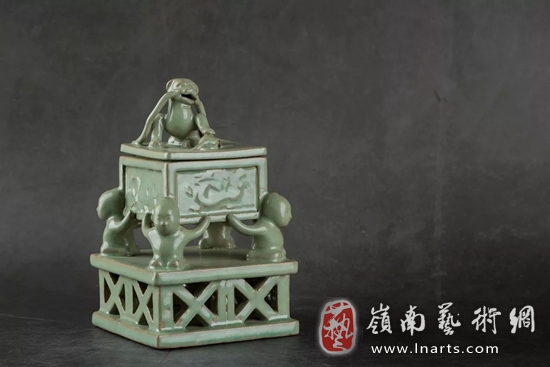 豆青釉香薰炉 紫砂胎,天然绿松石入釉 11× 11 ×17.5 cm