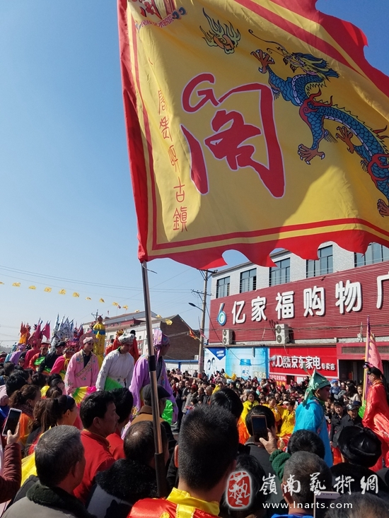 戊戌豫东社火旺,老岸背阁新气象。正月初七上午九时,佘家镇老岸广场彩旗飘飘,锣鼓喧天、人头攒动、气氛热烈。由长兴建筑工程有限公司与河南背阁老岸古镇民族艺术研究院共同承办的老岸背阁非遗展演正式拉开帷幕。