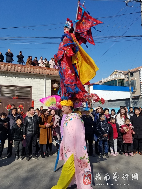老岸背阁民间表演艺术活动从古至今已有七百年的历史,随着各级政府对传统文化及各地非物质文化遗产的重视,这项有着悠久历史与独特地域文化特色的社火表演艺术,在老岸背阁传承人高伟成先生的带领下,近几年每年一届,已如火如荼逐步走向繁荣。一听说背阁演出,十里八乡乃至省城的人们早早赶来聚集在老岸古镇街道,占据有利位置,只为看到平日里难得一见的这一民俗,感受这种传统民俗的不同凡响之处。“背阁不但是一项传统民俗,也是很好的健身项目。村里面几乎家家户户都参与,背孩子的都是强壮人,老年人背不动了,就踩踩高跷,或者是穿上戏服,在地面上做一些简单的动作,也能很好地锻炼身体。”河南长垣县佘家镇老岸南关村背阁艺术团负责人高伟成说。