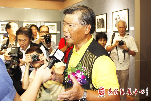 香港著名摄影家、《黑白情怀》雅集召集人梁继尧接受媒体采访时心情激动
