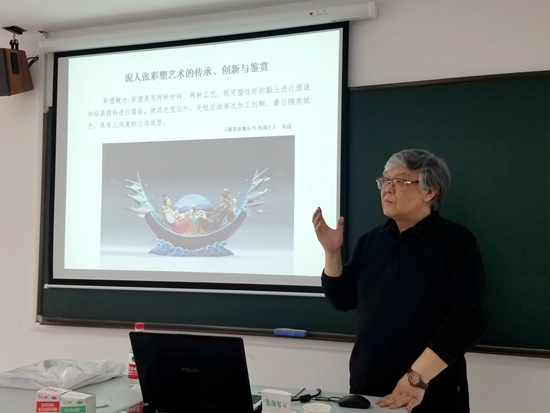 中国民间文艺家协会原副主席、清华大学美术学院雕塑系教授张锠先生讲授泥人张彩塑艺术的传承、创新与鉴赏
