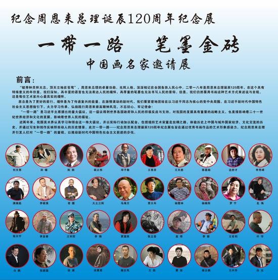 展览主题:一带一路·笔墨金砖——纪念周恩来总理诞辰120周年中国画名家邀请展