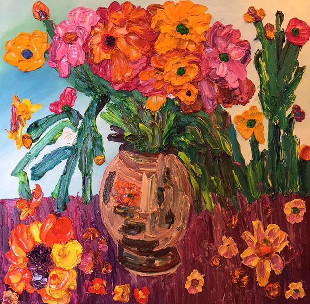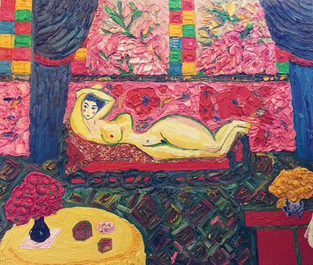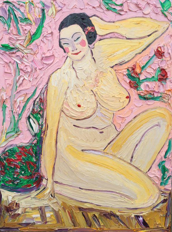 郭天馨是一位管理学硕士,不仅管理水平高超,更难得的是,她通读中外美术史,热爱研究中外艺术家的作品、钻研艺术理论。她擅长将理论与实践相结合,懂得学以致用,取其精华,各种艺术创作技法,她都能熟练掌握,至今已形成自己独特的创作技法。并且能根据不同的创作题材、创作内容采用不同的技法。在色彩运用上,她更是在印象派色彩并置的基础上,采用点彩并置的画法,使大笔触与色彩游漓于画面的表层,令画面呈现出绚烂亮丽的色彩和令人难忘的肌理之美。就如左拉所言“绘画所给予人们的是感受而不是思想”,“艺术作品的思想性--艺术活动的价值,在于艺术本身;而不在于艺术所要阐明的道理”。