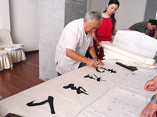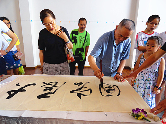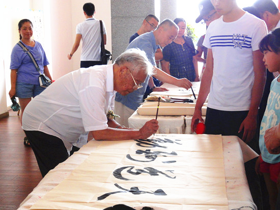 当日活动现场,人流之大,群众的热情之高,大大出乎组织者的意料之外,中途,主办单位甚至几度增派专人进城买纸……而今年已86岁高龄的邓福全将军和其他老将军、艺术家们一样,从上午十点四十分左右,除了中 午简短的吃了点工作餐外,就片刻也没休息过,尽管老将军、艺术家们早已是衣衫湿透,汗如雨下,但面对群众的热情和渴盼,他们却一直坚持着高强度的艺术创作,一直持续到下午六点,依然还有很多的群众排队等候……