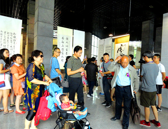 记者现场看到,很多现场观展嘉宾是祖孙三代全家动员,年长者90岁左右,年幼者是尚在襁褓中的婴儿,他们一起受艺术的魅力而感召,一起陶醉在艺术的海洋,一起沐浴着艺术的芬芳……