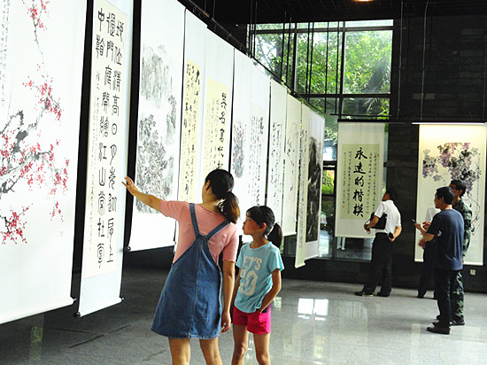 开幕式结束后,近300名现场嘉宾一起参观了将军书画艺术展。本次书画展现场展出的作品有:原成都军区副司令员陈世俊中将、原成都军区副政委张少松中将、原成都军区联勤部副部长钟世钦少将、四川省军区原副政委黎明少将、原昆明陆军学院院长邓福全少将、原13集团军副军长谭振亚少将、云南省军区原副司令员兼参谋长张志军少将、四川省军区原副司令员邹云华少将、四川省军区原副政委朱洪德少将、四川省军区原参谋长张培敏少将、原中国武警工程学院副院长陈华全少将、成都军区总医院高级专家曾祥元教授,以及王吉祥、陈乃建、吴泽全、胡真来、张水战、陈洪、萧之云等将军、书画艺术家及业主代表的书画作品。