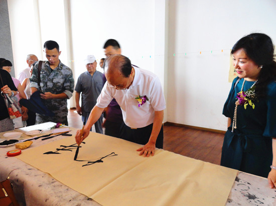为此,黎明将军现场赋诗一首:“将星书画进社区,军民高歌庆七一。携手共圆中国梦, 挥毫谱写新天地。”