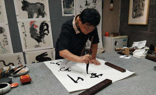 著名画家潘家忠在创作