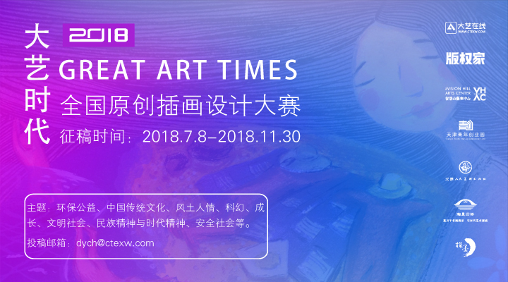 插画设计作为视觉艺术中的一种形式,具有独特的魅力。优秀的插画作品值得被发扬和传承。当前我国积极进行文化体制改革、大力推动社会主义文化大发展大繁荣,强化自身文化软实力,打造文化强国。为使青年插画艺术事业更好的发展,让创作更有价值,由大学生艺术在线发起,版权家、人民美术出版社、智慧山艺术中心等9家机构支持的2018大艺时代插画大赛于7月8日正式启动征稿。