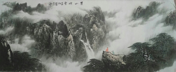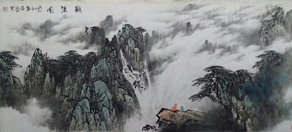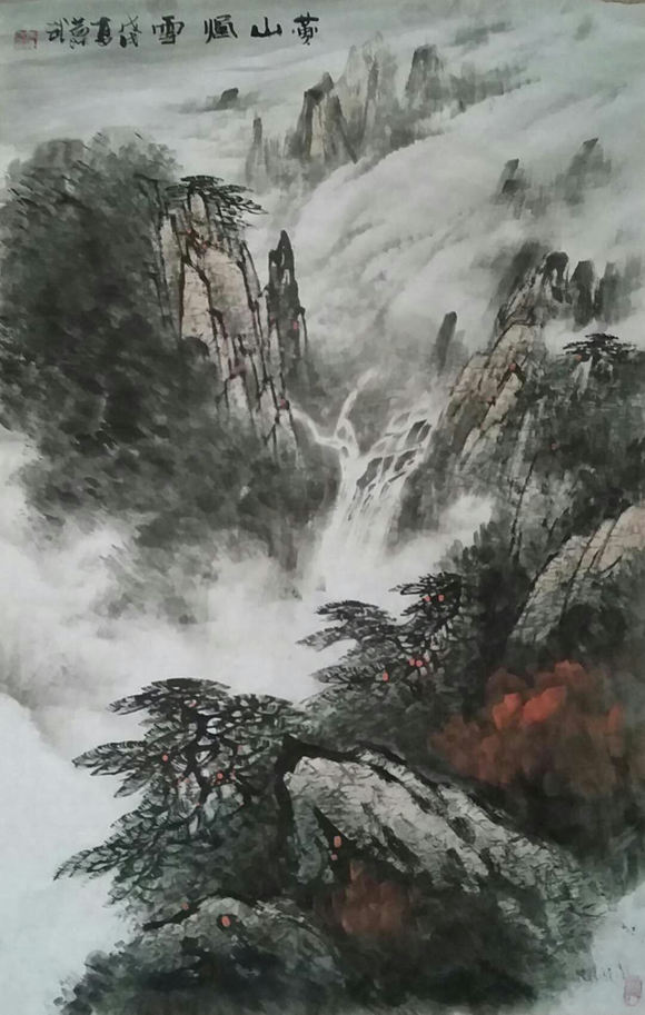 观赏黄跃武的《黄山烟云》、《黟山叠嶂》等画作,见云雾大山,苍天阔水,溪流松石,构图精妙,呈现出“纵然尘世多奇妙,不及深山松石云”的潋滟风光,美不胜收。他善用颜料,用色彩连接自然美景和内心世界。他笔力精道,刻画生动,如临妙境,观之让人悠然忘我。