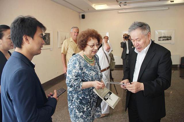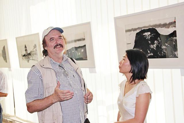 乌克兰著名画家爱德华·梅朱尔在展厅畅谈观感