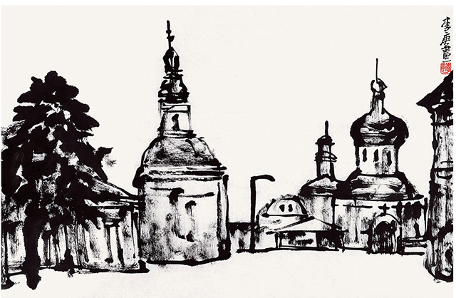 此次展出为李庚教授今年创作的以乌克兰题材为主的中国画作品。第聂伯河水墨印象,乌克兰风景写生等系列吸引了众多观者的极大兴趣。