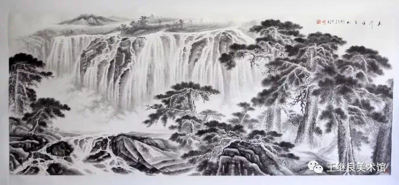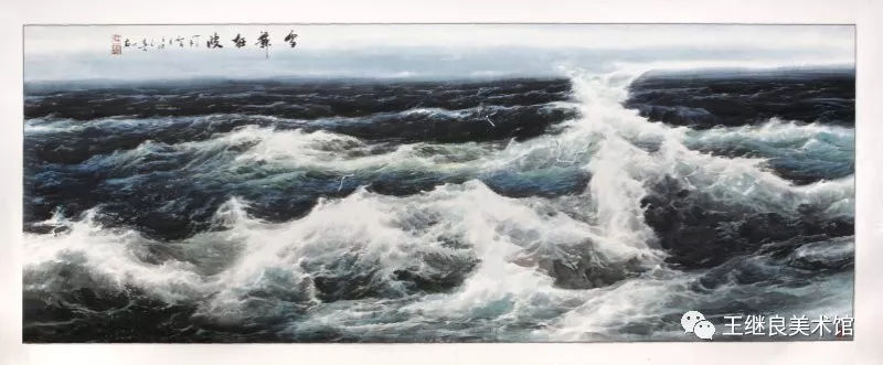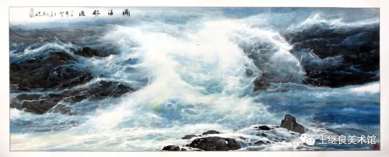 王继良先生使中华民族传统艺术得到了原汁原味的传承和前所未有地发展。创造性地探索出以喻水法、围墨法,辅以西洋画之光感、质感相融合的“王家样”画法而独步国际画坛。填补了中国美术史上以纯水墨来表现海洋画的空白。是当之无愧的当代海洋画作领军人物。他的画标志着华夏文明在古典文化艺术领域的当代最高水准之一。