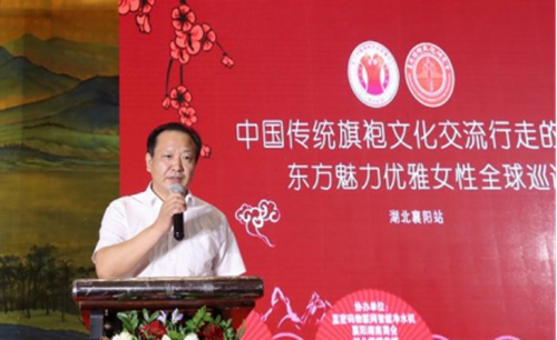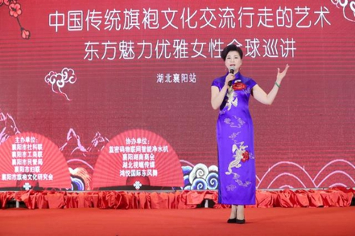 “两岸四地”百名优秀女企业家、襄阳市首届“道德模范”、中国企业家协会常务理事、襄阳市湖南商会常务副会长、襄阳市旗袍文化研究会会长陈湘虹致辞