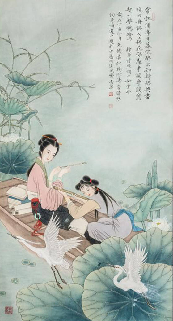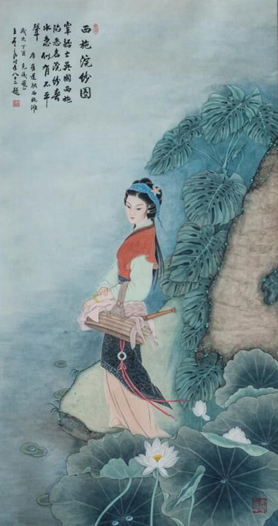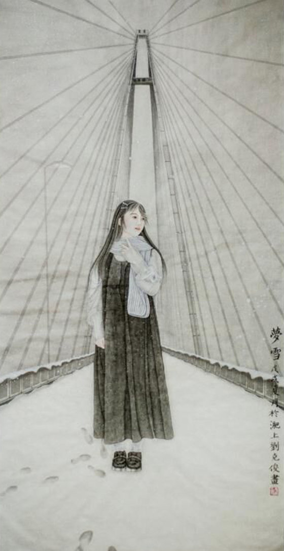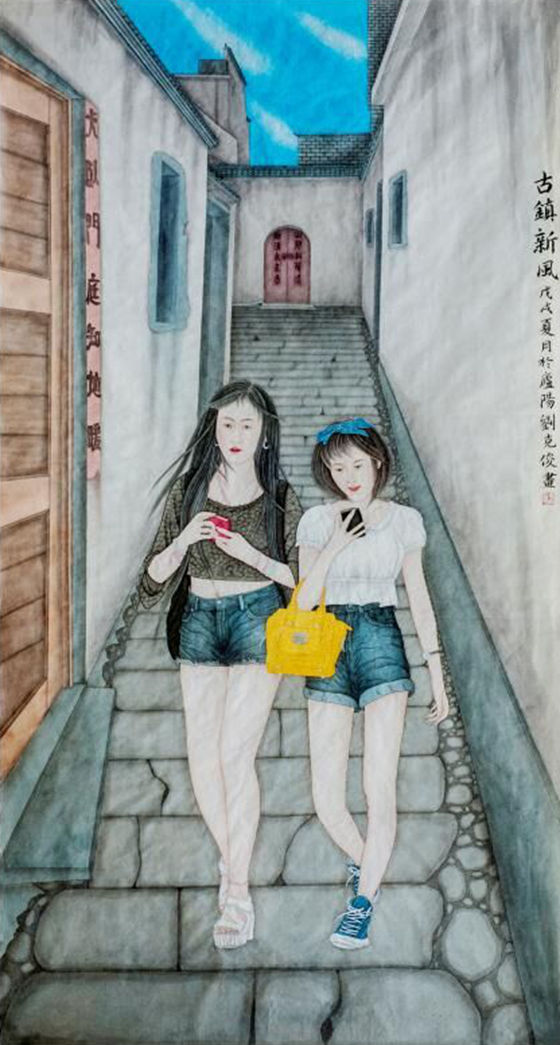读刘克俊先生的作品,山水画作墨色大胆、随意,色彩运用丰富、灵动。在他的人物画作品中有不少以荷花作为背景,意在通过画荷花的出淤泥而不染,清香、高洁,提醒人们向莲一样洁身自爱,他的作品追求和自身心灵的共鸣。“待发之前,心手相师,创作之前,已经胸有成竹。”他曾说,即使是画一本破旧的字典,也要让欣赏者感觉到刚被翻动的痕迹。