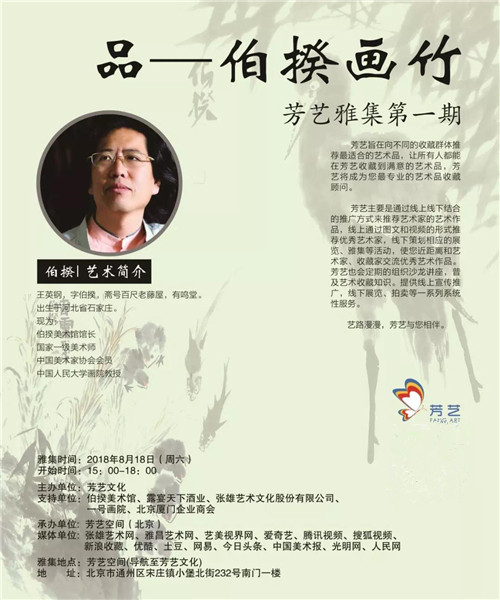 此次活动将展出伯揆先生近期创作的20幅左右小品作品,题材全部围绕着竹子展开,形式别具一格,内容丰富。创作手法为大写意花鸟画,水墨形式居多,作画率性为之,落笔淋漓快疾,高雅大气。