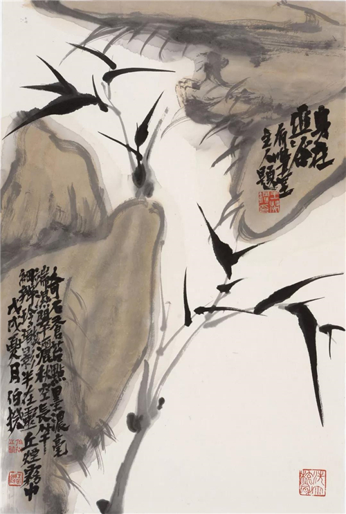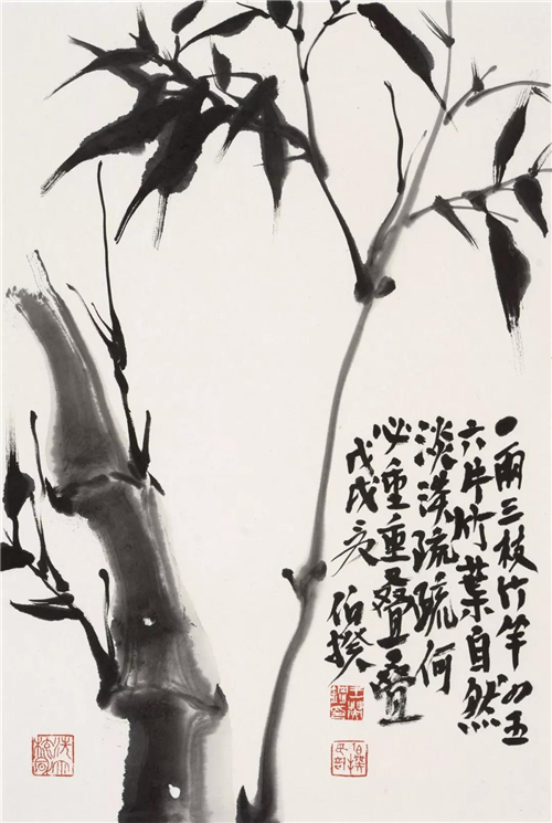 伯揆笔下的墨竹无论在用笔造型上,还是在谋篇布局上则明显异于传统的审美意趣。摆脱了传统文人画家写竹的惯常的形式与手法,而自成一格。