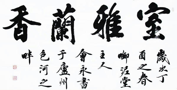 其楷书以颜鲁公为基,行书宗二王一脉,上追秦汉书风,尤以榜书见长。作品大气豪放,酣畅淋漓,多次参加书法大展赛获奖。