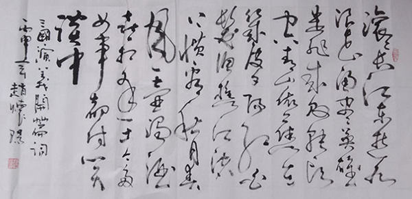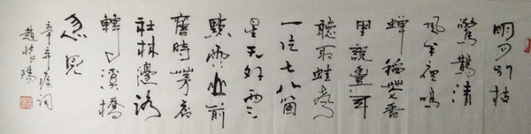 赵怀阳,1941年生,安徽合肥人。安徽省书法家协会会员,安徽省老年书画院副院长,省老年书画联谊会《书画苑报》副主编,省老年书画院办公室主任,合肥市老年书画研究会艺术顾问。喜爱书法艺术六十余载,尤精行草、大草、隶书,遍临汉隶张迁碑、礼器碑、石门颂等,精研二王、怀素、张旭、米芾、王铎等笔法,融入贯通,集于一身,形成自己的独特风格。作品备受艺术同行及广大群众喜爱与推崇,先后多次特邀参加省内外各类书画展,被省内外艺术部门多次聘请为书画评委。