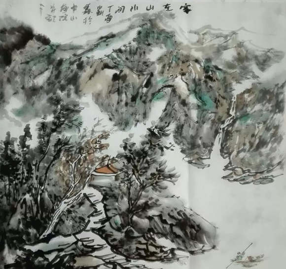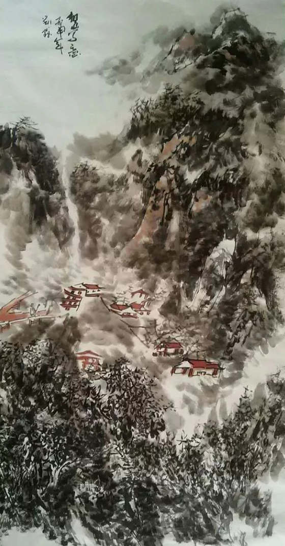 刘鑫显然深为焦墨中所氤氲而来厚重墨气所折服,他的山水深受黄宾虹、李可染,张仃诸诸家的有益因子,在画法上以中锋为主,加以焦墨,化淡为浓,由浅及深,形成浓墨淡彩、笔势迅疾的特点,用笔浑圆含蓄,新颖多变,景象郁勃新奇,意境宏深,颇具大家之象。在题材上,刘鑫没有去追慕名山胜水的刻画,而是埋首于对家乡山水风物的表现。淮北相山的山山水水成为他取之不尽用之不竭的创作资源。相山巍峨挺拔,曲折绵延,山势高峻,树木葱茏,宛如一条巨龙横亘在淮北平原上。刘鑫生长于斯,深受家乡厚重质朴而又灵动的文化所熏陶。多年来,他刻苦勤勉,勤奋为之,终于画出了一种属于自己的气象。自然、生涩、朴质、苍茫的画风在无意中积累构筑成型。刘鑫的山水画作,远观山势雄厚,有俨然峻拔之势;近观点画纵肆,有温润隽永之情。且构图饱满、气象苍浑,这种平实的画风实为当下画坛所少见。春有耕耘,秋有硕果。如今,刘鑫的绘画艺术历经磨练,不断升华、升腾,已渐为世人瞩目。