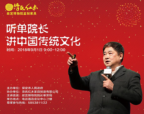 近日,受保定市人民政府和保定滑氏红木——故宫博物院监制家具总部的邀请,故宫博物院院长、文化部副部长单霁翔将于9月1日在保定市举办自己的又一场文化讲座。想一睹单院长风采的保定市民,可得抓紧时间报名了。