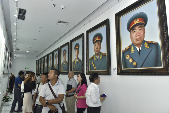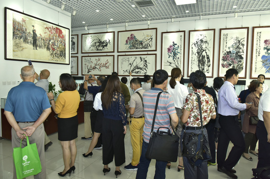 出席参加此次书画展的有国防大学原校长裴怀亮上将,全国人大常委、人大外事委员会副主任委员第二炮兵原司令杨国梁上将,第二炮兵原政委隋永举上将,罗荣桓元帅之子原第二炮兵副政委罗东进中将,林彪元帅之女林晓霖女士,朱德元帅外孙刘建少将,解放军报社原社长张宗银少将,原总参兵种部副政委赵先春少将,原第二炮兵装备部总工程师李建国少将,原南京政治学院政委吴永川少将,解放军报原副总编连俊义少将,中国人民解放军驻香港特别行政区部队原副司令员董文久少将,国防科技大学电子学院原政委乐道斌少将,黑龙江武警总队政委李汉文少将,央广传媒集团董事长王跃进先生,火箭军某基地政治部原主任汪德文先生,中华人民共和国驻非洲总武官王健先生。出席此次书画展活动的还有当代著名肖像油画大师刘杨先生,著名伟人画家刘三多,中国书画界著名艺术评论家丹青飞狐女士,著名国画家朱传宏、著名书法家潘家强先生。
