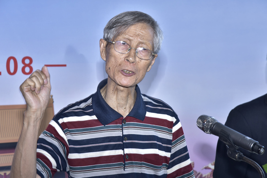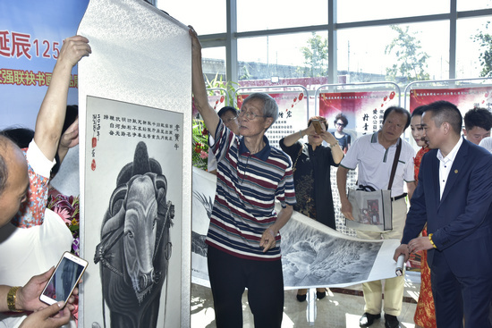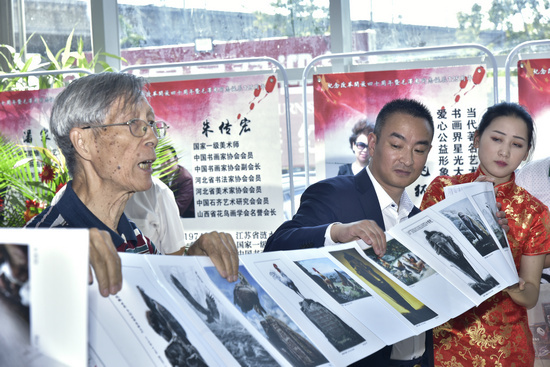 中央文史研究馆书画院研究员刘三多先生向观众展示作品