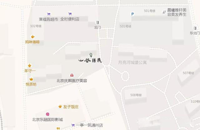 3.驾车 :导航至“东融国际影城月亮河店”,请将车辆停于月亮河停车场 ,然后步行至“山谷居民”(位于影城东北角-斜对面),约2分钟。