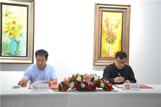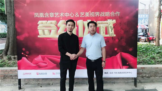 凤凰含章艺术中心总经理于飞翔先生与艺美视界网总编海东先生签署战略合作仪式