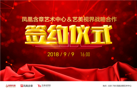 2018年9月9日16:00,凤凰传媒旗下凤凰含章艺术中心与艺美视界网战略合作签约仪式在北京798艺术区凤凰含章艺术中心举行。