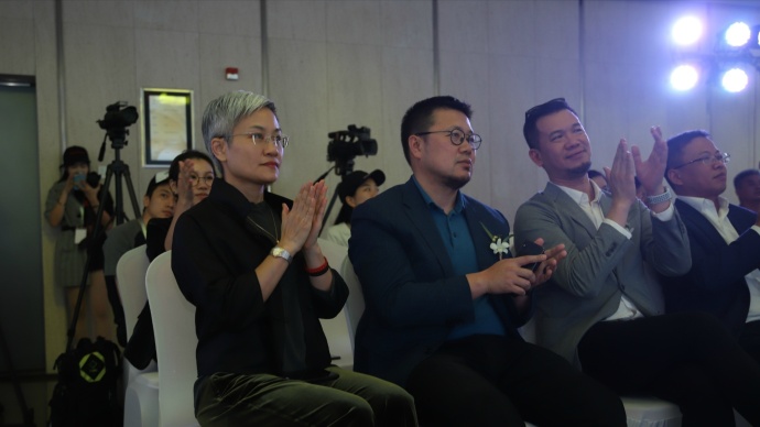 左起:平安集团首席人力资源执行官蔡方方女士、平安不动产副首席运营官刘鹏鹏先生、平安不动产首席设计师吴衍先生、平安不动产商业事业部总经理张启辉先生在开幕现场