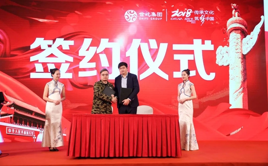世屹集团文化产业部总监张琪悦与朱府铜艺第五代传承人朱军岷签约合作