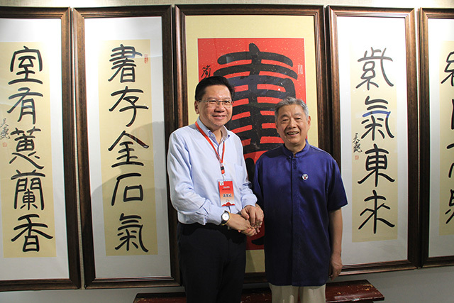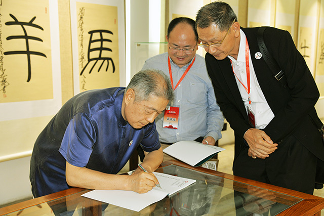 嘉宾们对展出的《中国简帛书法大字典》的字头样稿表示出极大的兴趣,认为这是一个极富历史价值、学术价值的好著作,并对吴巍先生在纷繁复杂的经济社会里,还能够静下心来研究创新简帛书法,大家表示由衷的敬佩。
