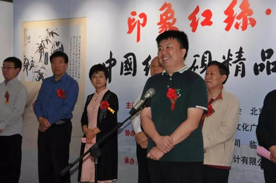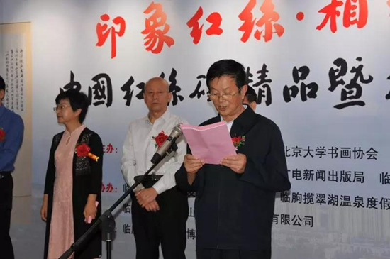 开幕式由临朐县文化广电新闻出版局局长杨维政主持,临朐县红丝砚协会会长安同昌、临朐大唐红丝砚博物馆馆长李德雨分别介绍了本次展会及筹备情况,书法家祝帅,临朐县委常委、宣传部长黄芳分别致辞。