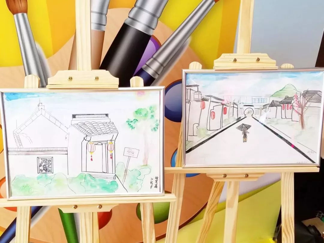 孩子们通过对小镇的描绘,于白墙青瓦之间近距离感悟到了中国传统建筑之美。不局限于建筑原有的形态,孩子们用自己喜欢的色彩画出了自己心中的书院小镇。