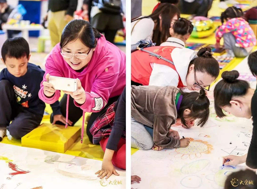 在大爱城社区的活动现场,孩子们走出家门、走进社区、走进了大自然。在有机农场撒欢,清新自然的天气、百余种珍贵鸟类、四季万亩花海在小画家的笔下栩栩动人。