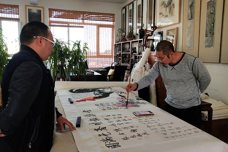 整体来看,这次隔空对“画”是非常成功的,几位宋庄艺术家在不影响画面的情况下,巧妙穿插,让题跋变成了画面的背景,增添了画面的层次感,突出了绘画的主题性,分散了视觉上的注意力,强化了作品的意境与文气,跋文同时对画作起着思想性,逻辑性的暗示作用,不仅是对作品的诠释,也引导欣赏者的画外联想,成了画作的重要组成部分,客观上起了画龙点睛的微妙作用,由此可见,此幅作品有着非同寻常的历史意义。