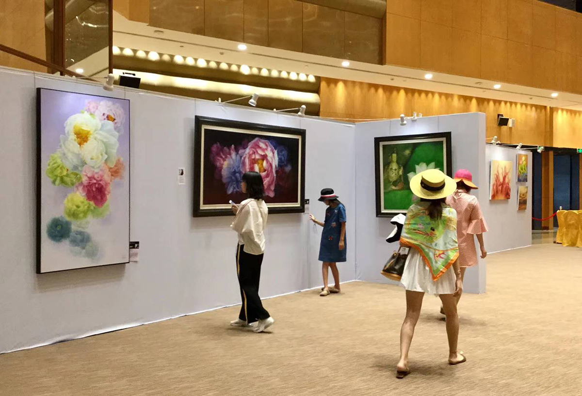 此次活动参展作品近60幅,其中有年老的艺术家神采飞扬,也有正值青春的艺术新生代的张扬创新。