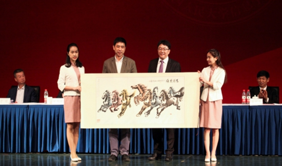 大会举行了信息学院发展基金捐赠仪式。自院庆活动启动以来,信息学院共收到了40年来毕业生累计400万现金捐赠,并收到99级校友王延鹏创作的书法作品《实事求是》、《开信息之先河》以及他代为捐赠的中国人民大学特聘教授孟天宇、路世明、苏万顺等书画名家作品22幅。