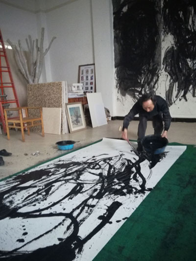 80年代初,当我结束了一段时间的拼贴生涯,茫然中又回归到早年从事的水墨画创作领域中来,勉强自己画了一小段传统水墨后,可能是出于一种对新艺术的渴望,不知怎么就滑到后来一下搞了几十年的抽象水墨实验上去了,这回倒是玩“真”的了。1983年前后陆陆续续创作出来的一组《挣扎》系列,就已完全抛弃了传统的“意象”创作方法,进入一种“自主”、“无序”的自足状态。接着1985年前后创作出的《现代工业系列》、《无标题系列》等,这些作品中的一部分曾参加1988年10月我在中国美术馆举办的个人画展。这一干就近三十年,一直到2010年,转入当代艺术《消解》系列的创作实践。回顾漫长的艺术生涯,其中有索然无味时的欲罢不能,有无路可走时的孤独彷徨,但更多的是一种无名的诱惑产生的情结难舍的信念在支撑着自己。穿插其中的是偶尔中断一小段时间画点写实人物,以应付世俗纷扰,以至后期转为兴趣盈然的巨幅“心象”人物头像。其实,无论是水墨、消解或装置等,转眼间,人生多少年就这样过去,无定法可言的当代艺术情结,留下的仅仅是人生空然的一声叹谓!