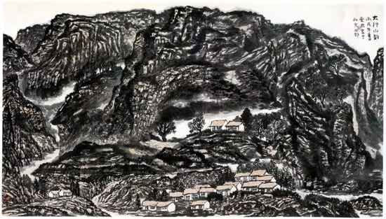 在2000年以后,和爱君的作品从整个风格上发生了变化,逐渐从唯美抒情走向了刚健厚重,予人耳目一新的感觉。特别是以太行山为主题的画作,运用了密体加法,墨色深浓,构成现代,山水意象更具抽象化。此时他已经摆脱了这些年来,和爱君的审美视野不断扩大,悠游在在东方和西方之间,形成了中西文化的交汇。他的作品不仅凝聚着中国传统笔墨的精髓,而且还融合了西方绘画的现代精神,并在自我的创造中建立了个性化的审美体系。他在笔墨上的功夫日益成熟,其中的变革与创新,显露了当代山水画的民族个性和审美情感,在一定程度上亦昭示出中国画未来的发展方向。黑格尔这样认为:“真正不朽的艺术品当然是一切时代和一切民族所共赏的”,和爱君正是以全人类更能理解的绘画语言,表达出自己的审美理想和山水图式,显然更符合现代人的审美要求,在艺术的共性上有了更多心灵的相契。因此,他的作品已经超越了国家和民族的局限,走向人类共赏的精神层面。