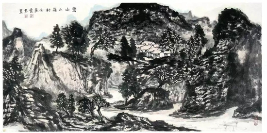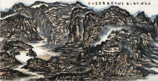在当代山水画领域,和爱君是一位勤勉而又富于探索精神的学者型画家。他在沿袭传统笔墨的基础上,对山水画的再造与革新达到了前所未有的新高度,甚至颠覆了既往的某些程式和理念,使山水意象升华为精神旨趣的思考和表达。 当然, 在拜现代山水大家何海霞先生为师以后,和爱君沿袭恩师墨色厚重,笔力劲健的审美之风,在技法形式上更趋于宽泛多元,最终形成庄穆雄奇,墨韵浓郁的山水之貌。他的笔下闪现着浓密的山林、沟壑、草木,经过皴擦点染的笔墨形式,透出野逸苍茫的山之气息,更流露出显著的写之趣味。他擅于中锋用笔,以富有节奏感的线与墨,将自然万物统一在同一精神层面,表达了对山水精神的深刻领悟。这是超越了形的提炼与概括,在审美上更 对自然的深情,恰如古罗马艺术家朗吉努斯所说:“大自然向我们人类心灵灌注进去一种不可克服的永恒的爱,比我们自己更神圣的东西的爱”,正是这样的爱引领他走进自己的山水王国里,塑造着理想的山水之美。