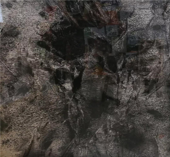 80年代初,当我结束了一段时间的拼贴生涯,茫然中又回归到早年从事的水墨画创作领域中来,勉强自己画了一小段传统水墨后,可能是出于一种对新艺术的渴望,不知怎么就滑到后来一下搞了几十年的抽象水墨实验上去了,这回倒是玩“真”的了。1983年前后陆陆续续创作出来的一组《挣扎》系列,就已完全抛弃了传统的“意象”创作方法,进入一种“自主”、“无序”的自足状态。接着1985年前后创作出的《现代工业系列》、《无标题系列》等,这些作品中的一部分曾参加1988年10月我在中国美术馆举办的个人画展。这一干就近三十年,一直到2010年,转入当代艺术《消解》系列的创作实践。回顾漫长的艺术生涯,其中有索然无味时的欲罢不能,有无路可走时的孤独彷徨,但更多的是一种无名的诱惑产生的情结难舍的信念在支撑着自己。穿插其中的是偶尔中断一小段时间画点写实人物,以应付世俗纷扰,以至后期转为兴趣盈然的巨幅“心象”人物头像。其实,无论是水墨、消解或装置等,转眼间,人生多少年就这样过去,无定法可言的当代艺术情结,留下的仅仅是人生空然的一声叹谓!