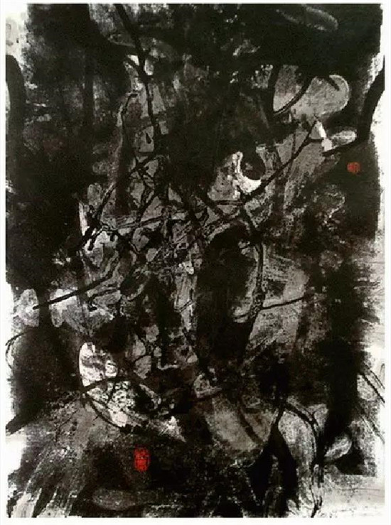 在当代水墨画的探索上,可以说我是个“老将”了,有意思的是,美术界曾有人戏称我是这条道上的“独行大侠”,只不过是“一个人”独行,很少扎堆“起哄”,“耐”得住罢了。其实,早在上世纪七十年代末,我就尝试过所谓的“抽象水墨”,那时只是一时兴起,瞎搞着玩一下“遣兴”。