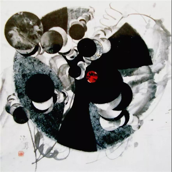 无论采用何种艺术形式与材料,我深深体悟到,自己抽象艺术中的轴心形态,是一种叙事性抽象精神。记得上海艺术家王天德,较早在他梳理的有关当代实验水墨史的一文中,就曾有一截专门谈到我作品中有较强的叙事性抽象水墨的特色,这一点说的还是比较确切。在抽象水墨中,尽管有内在的叙事色彩,但从富有东方感性“意象”味道的“热抽象”,到西方理性分析的“硬边”味道的“冷抽象”,如《魔方》系列等,涉足面较广。后期的《消解》系列,也内含一种社会与历史“叙事”内涵的抽象性思维。或许,由于持守“无相”独行的艺术之路,较少参加集体“行为”,自己更乐于一种“不温不火”的“孤独”生存状态,“心安即是归处”,“心安”艺术的原点也会随心所至,伴随当代艺术实践的是国际化的思虑心态,追求自我价值的认知与内在真心所爱,这些需要努力建立在对时代精神的感悟及心胸境界宽广的基础上。无古无今,无中无西,对“无相”创作方法论的选择,也使自己更加自由与充满激情,以一种开放的心境面对并拥抱世界,一切皆纳入一种自我选择、平衡与发现的创造之中,无所顾忌地去走自己的艺术之路,只要喜欢,甚至不分种类与形式(无单一化的形式风格也是当代艺术的特点之一),不断进行艺术上的自我突破与拓展!