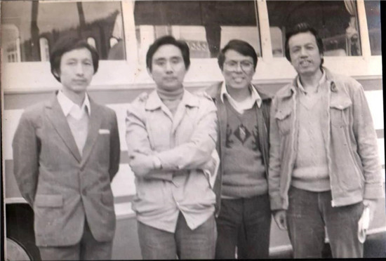 1985年,黄山会议期间在黄山市泾川山庄的合影(左起:杭法基、皮道坚、沈雷震、尚扬)